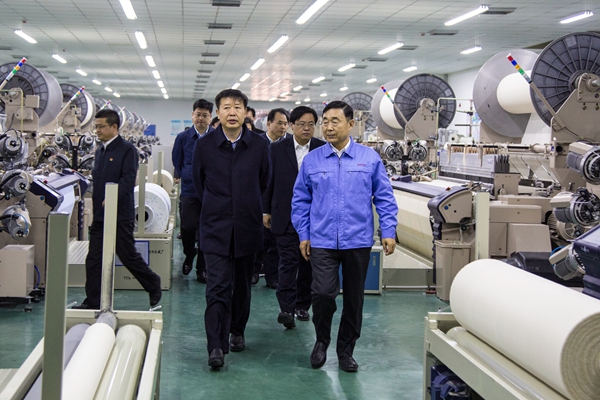 2019年3月16日,高密市委书记卞汉林,市委副书记、市长王文琦,市人大常委会主任万丽,市政协主席刘明伦等市领导前来孚日控股集团观摩调研。孚日控股集团董事长孙日贵陪同观摩。