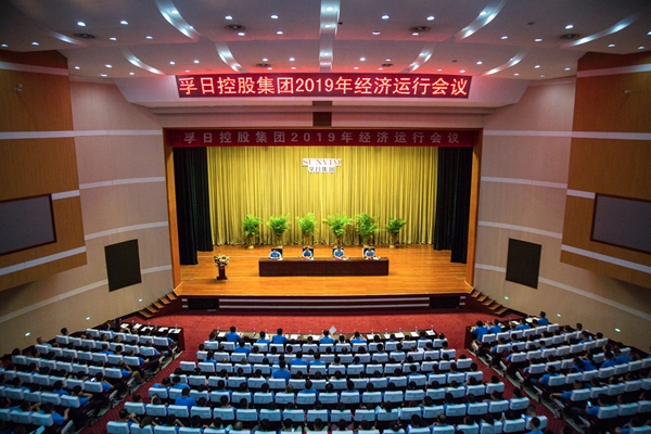 2019年7月19日,孚日控股集团2019年经济运行会议在员工俱乐部影剧院隆重召开。集团领导孙日贵、孙勇、吴明凤、张国华等出席会议。集团各公司、各部室负责人、业务骨干、全体股东和员工代表一千人参加大会。大会由集团党委书记孙勇主持。