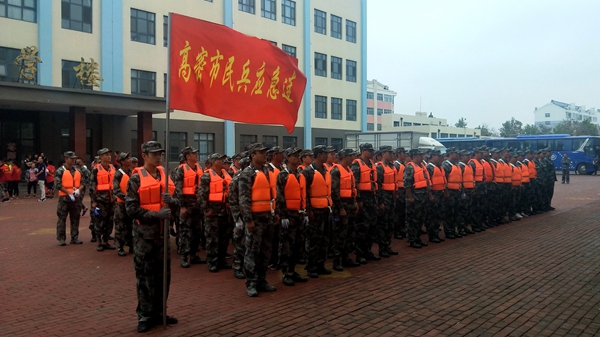 8月12日晚,接到高密市人武部通知后,孚日民兵迅速从四面八方集结。受台风警报影响,他们中的许多人都已经在公司值了三天两夜的班,还没有来得及回家吃顿安稳饭。