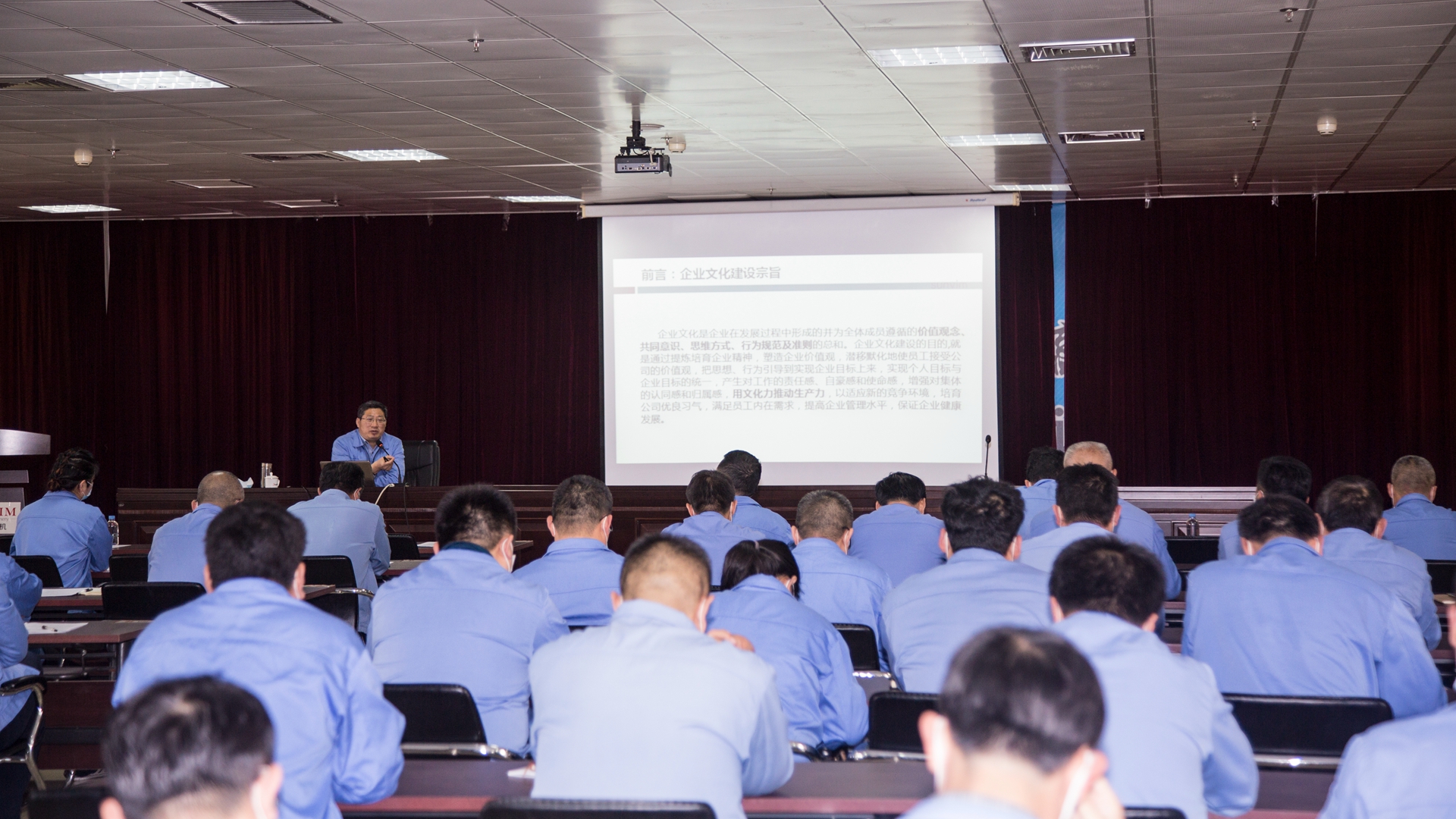 綦宗忠在讲解中指出,企业文化是企业在发展过程中形成的并为全体成员遵循的价值观念、共同意识、思维方式、行为规范及准则的总和。企业文化建设的目的,就是通过提炼培育企业精神,塑造企业价值观,潜移默化地使员工接受公司的价值观,把思想、行为引导到实现企业目标上来,实现个人目标与企业目标的统一,产生对工作的责任感、自豪感和使命感,增强对集体的认同感和归属感,用文化力推动生产力,以适应新的竞争环境,培育公司优良习气,满足员工内在需求,提高企业管理水平,保证企业健康发展。