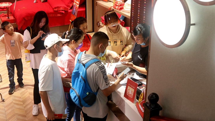 到店有礼,人流如织,迈入孚日家纺店门,一片片中国红映入眼帘,一组组婚庆家纺琳琅满目,顾客瞬间沐浴在一片浓情化不开的喜庆氛围之中。