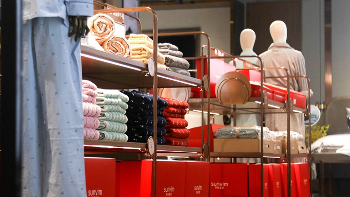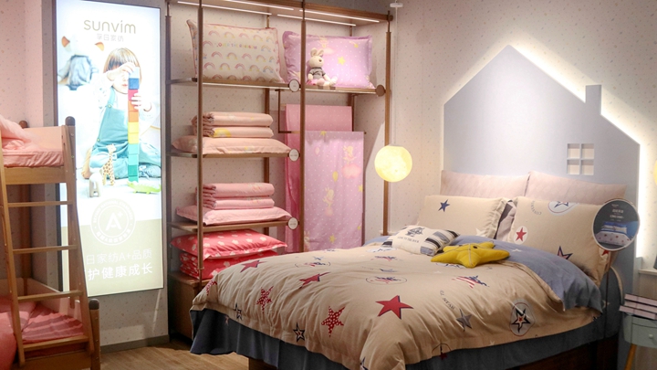 更上一层楼,盛装迎客的二楼让顾客感受到从爱情到亲情的延续与升华。匠心独运的家纺件套,童趣盎然的婴童家纺,让顾客信步间尽享家的温暖、舒适与雅致。