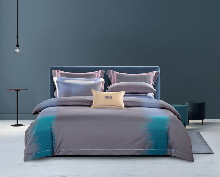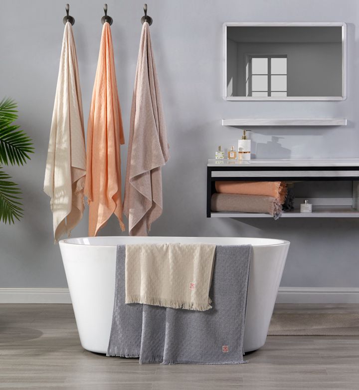 《水墨桑麻》设计灵感来源于极限主义,强调一种"理性、冷峻、简约"的艺术风格。产品采用原液着色的有机“竹丽尔”纱线织造而成,通过素色工艺达到肌理丰富的色织效果。产品采用渐变设计,放弃过度装饰,秉承简约而不简单的原则,颜色搭配跟组织相得益彰,演奏出一曲触感温柔、贴近自然的和谐乐章。